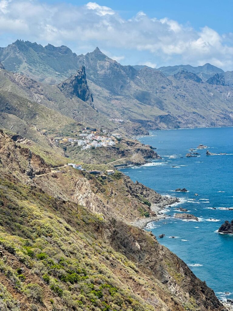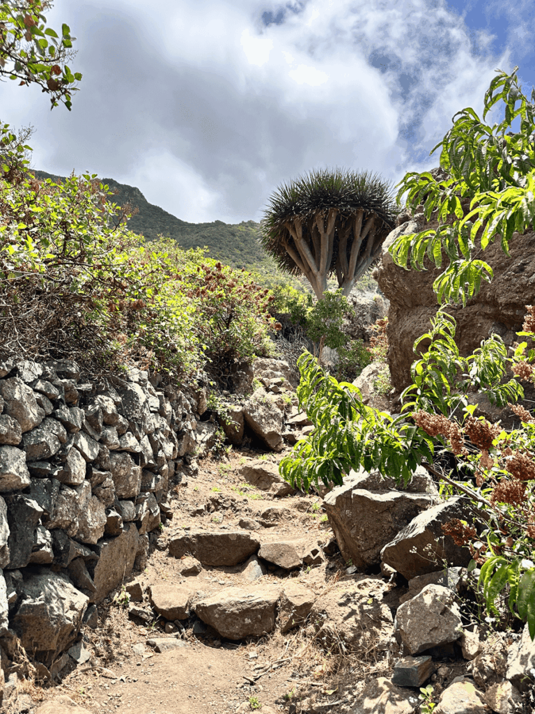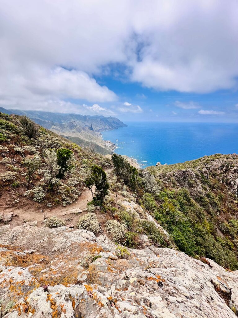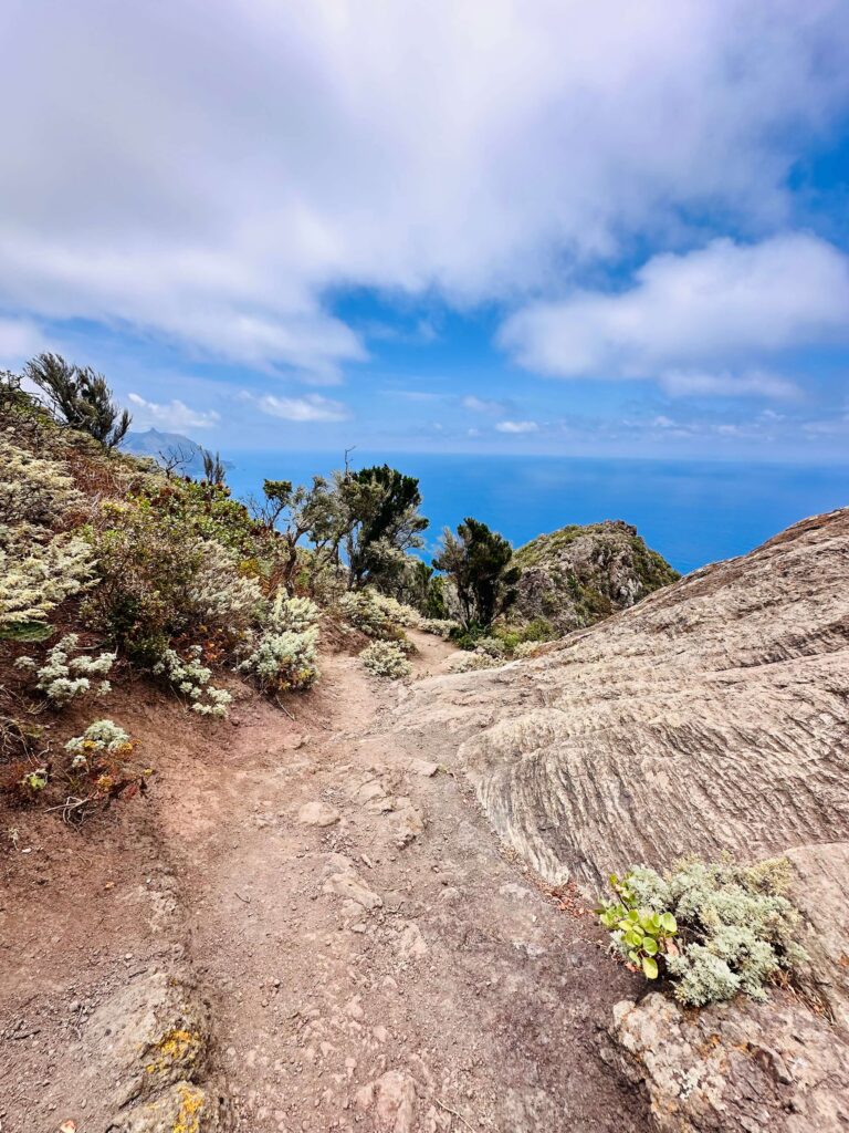 Po minięciu El Draguillo szlak wznosi się nieco wyżej, prowadząc kamienistą ścieżką. To najbardziej wymagający fragment, jednak wysiłek wynagradza widok – szeroka panorama oceanu, klifów i miasteczka Taganana, przycupniętego na zboczu góry.